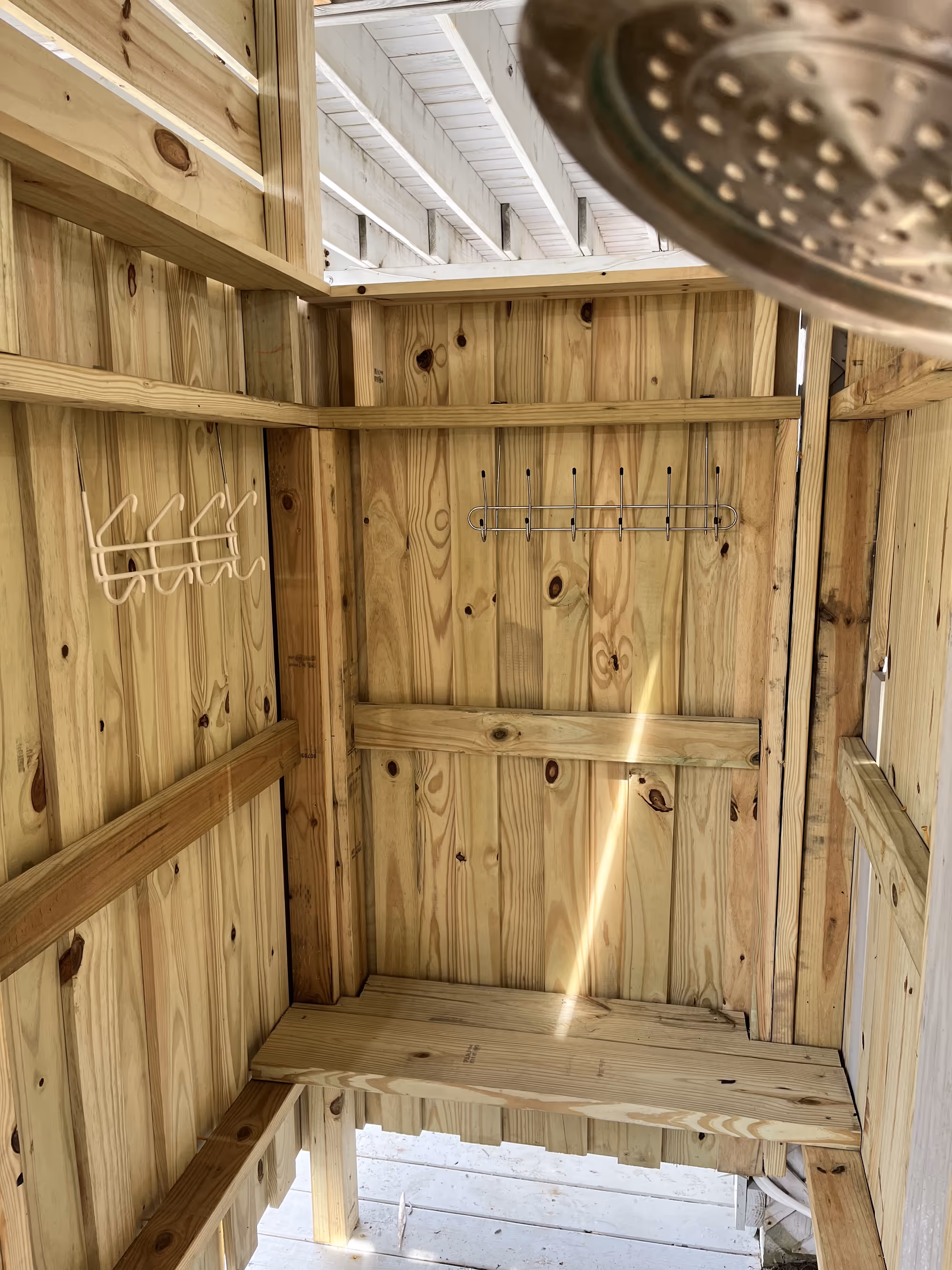 - Enclosed outdoor shower with hot and cold water with a changing area near the pool.