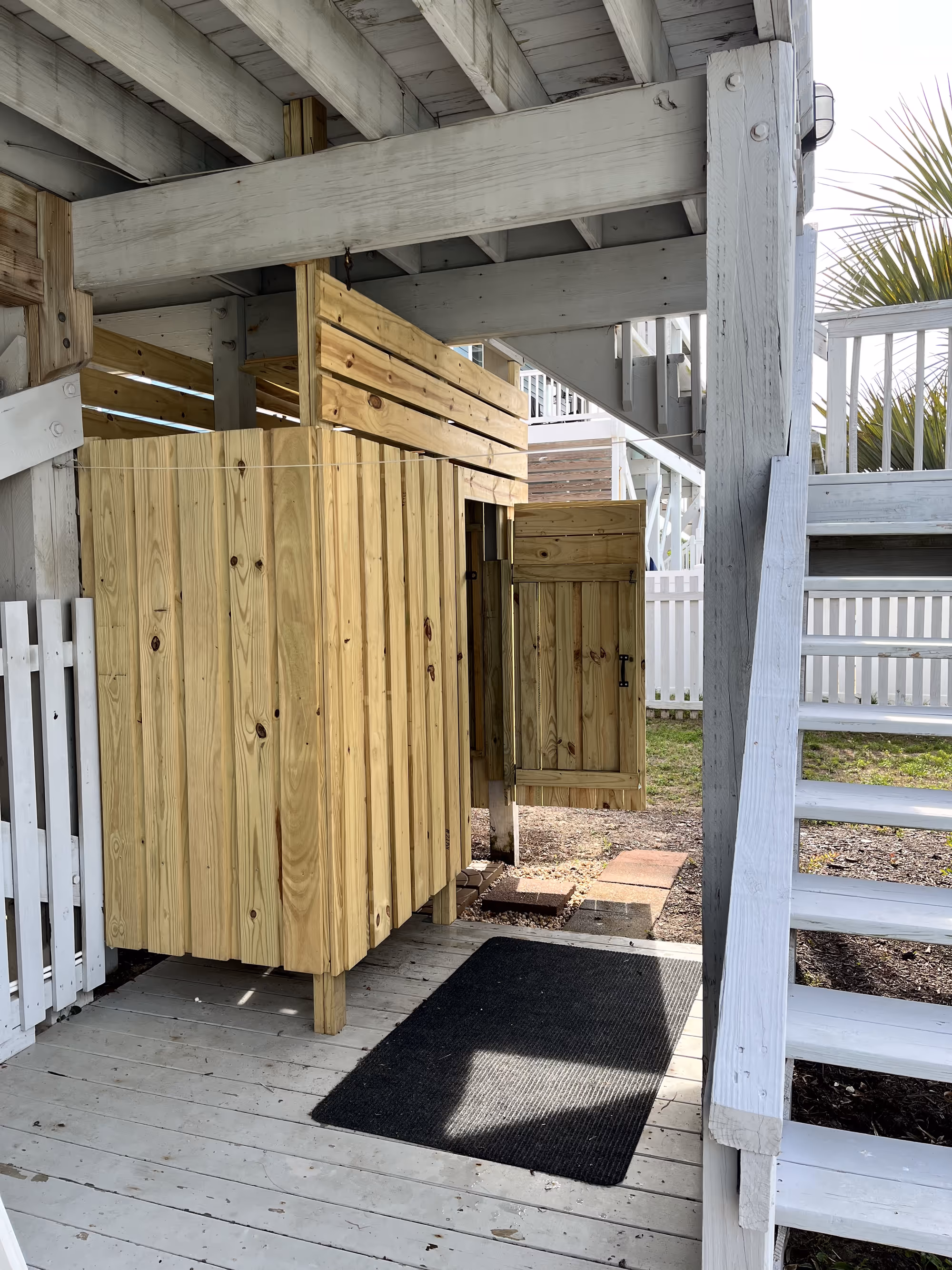 You will also find an outdoor hose for washing off sandy feet, beach toys, boogie boards, etc. Please remove sand BEFORE entering the home and the pool. Thank you so much.
